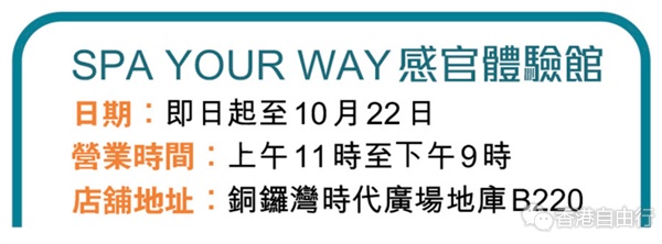 「SPA YOUR WAY感官体验馆」于即日起登陆铜锣湾时代广场,当中包括Spa of the World漫沐·静谧地图展出来自世界各地的珍贵成分原料,分享品牌从包装到产品设计自然灵感。