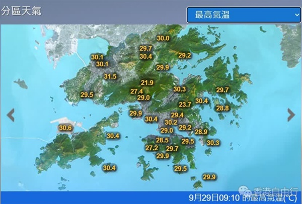天气酷热,本港今早9时许,多处已录得逾30度,打鼓岭30.0度、元朗公园31.5度、沙田30.3度、深水埗30.4度、九龙城30.2度。