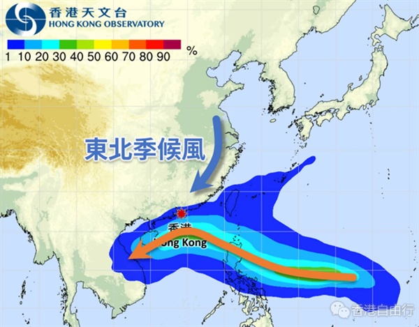 另外,天文台预测位于菲律宾以东海域之西北太平洋的对流云团会在未来两三日逐渐发展为热带气旋,并在週末期间靠近吕宋一带,随后有较大机会进入南海东北部。此外,一股强烈东北季候风会在星期日(19日)抵达华南,在与潜在热带气旋的共同影响下,本港下週初至中期风势颇大,离岸及高地吹强风,气温显著下降。