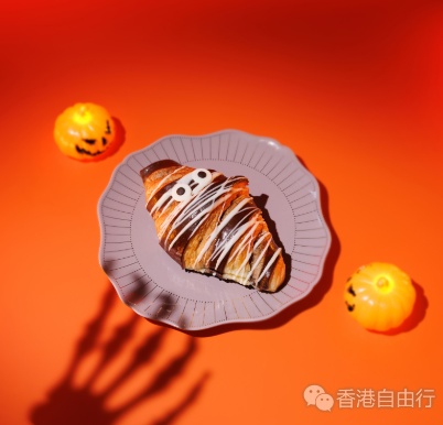 木乃伊可颂:草莓果酱搭配巧克力酱,再加上巧克力眼睛造型,可爱又美味,是孩子放学后的完美小点心。