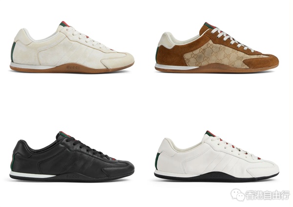 鞋的细节设计满满,例如鞋带上有着淡金色Interlocking G吊饰、鞋侧的Web条纹及后跟的条纹,备有麂皮拼技术加工面料的彩色版本。