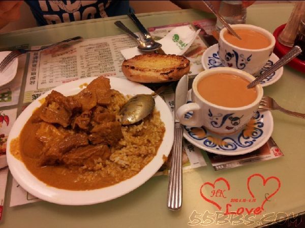 晚上回酒店的时候正好看到翠华,本着在番里泡过的原因决定进去尝试下,里面生意果然很好,我跟老公都点了咖喱,味道不错,我完全用来拌饭的,就是辣了点,我们非常失误的点了两杯热奶茶,加了很多糖,味道依然不好,好吧,我是第二天在澳洲牛奶才喝到非常好喝的冰奶茶.