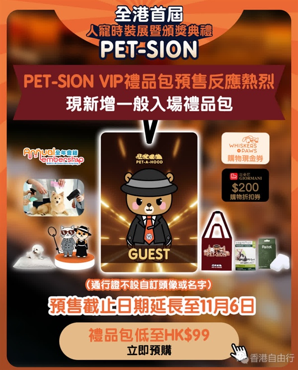 由一站式宠物服务手机应用程式PET-A-HOOD主办的全港首届人宠时装展「PET-SION 2025」,将于11月7日(周五)在尖沙咀海旁星光大道开幕。本次「PET-SION 2025」活动结合「Pet 宠物」与「Passion 热情」,打造香港首个以宠物为主角的大型嘉年华会,市民可携亲友及爱宠免费入场,共创难忘回忆。