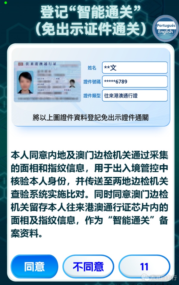 据悉,该智能快捷通道的适用人群包括:年满14周岁以上,持有效往来港澳通行证和多次有效逗留、探亲、商务、人才、其他类赴港澳签注的内地居民,以及持有效港澳居民来往内地通行证(含非中国籍)的港澳居民、持5年有效台湾居民来往大陆通行证的台湾居民,且同意采集核验面相、指纹等信息用于出入境边防检查核验的,即可选择“刷脸”通行。