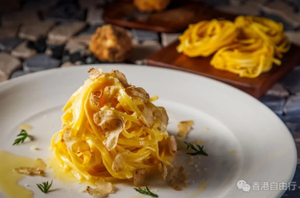 宽条面配牛油及顶级巴马臣芝士、白松露是皮埃蒙特的名菜之一,面条蛋香满满,芝士及牛油香充萦口中,而白松露则增添轻柔芳香 .使人垂涎三尺。