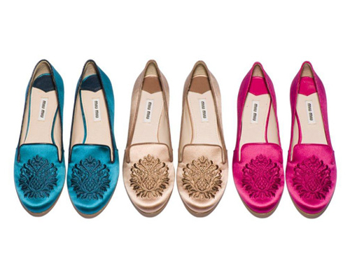虽然高跟鞋能把双腿拉长,加强气势!但如果要我一整天穿着看似攻击性的高跟鞋,还没有到半天,双腿应该会断掉了吧?!加上工作关系,经常跑东跑西,还是一双舒适的 Slipper 比较适合我!Miu Miu Autumn Winter 2012 推出的 Slipper 带有一点点传统的刺绣风格,不同色系的选择,让配搭更容易!漆皮的蝴蝶款式,优雅与少女味兼备,无论工作还是约会都事好选择!如果有意添购新鞋子的你,就不要错过了!