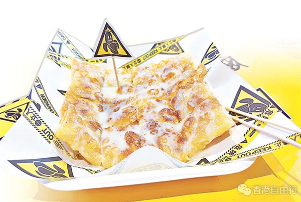有了饮品,悭妹又去「香蕉仔」点了一份35元的炼奶香蕉煎饼,这款没有太多浓味酱料,只有香蕉、鸡蛋和炼奶。隔着玻璃看老闆製作,超薄超韧的饼皮已经看得人口水直流,夹上香蕉,淋满炼奶,能想像到入口有多酥脆。煎饼到手一定要趁热享用,咬开脆皮,浓郁的香蕉馅在口中爆开,再饮一啖柿柿奶绿,甜蜜又邪恶。