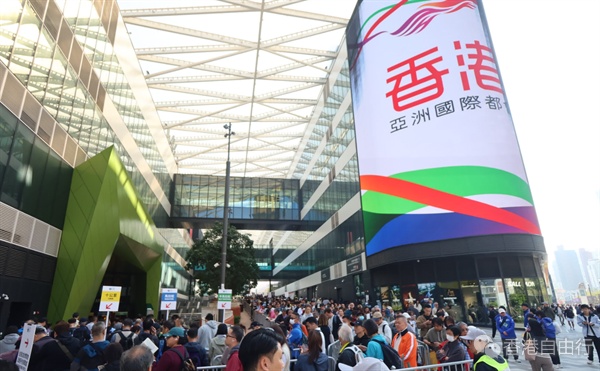 现场人山人海,气氛热闹,甚至有不少市民一开锣便跑进博览会会场,亦有不少跑手拿着号码布到处排队打卡影相。