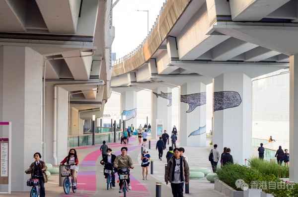 这条与海为邻的板道不但地理位置独特,景色宜人,土木工程拓展署高级工程师杨思翔表示,板道的东段和较早启用的西段一样,均属海滨共享空间,设有共享径和行人专用路径,并提供多项特色设施让大众使用。其中,体验式玻璃观景台让游人感受脚下的维港,近电照街的宠物友善区则让市民与牵绳宠物轻鬆「放电」,数个多功能开放式空间更可供市民和团体申请举办展览、艺术和社区活动。
