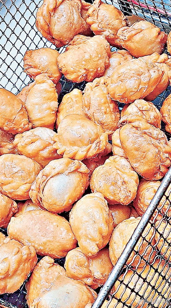 花生酥角、蛋散、糖环、芋虾、九江煎堆、笑口枣等油器品类齐全,当中限定的豆沙角更是刚出炉就遭一扫而空。豆沙角外皮由糯米粉製成,内里选用香甜绵滑的红豆沙馅,经过炸製后,胀卜卜的造型形似荷包,新年寓意财源广进、金银满屋。而生隆饼家出品的豆沙角与别家都不同,师傅在红豆沙馅的分量上作了取捨,豆沙角的内部因为留有一部分空间而自然鼓起,形似一颗鸡蛋,圆润饱满,十分好看。虽然达不到爆馅的程度,但也正好与油炸的糯米外皮中和,达到甜而不腻,令人食过翻寻味。