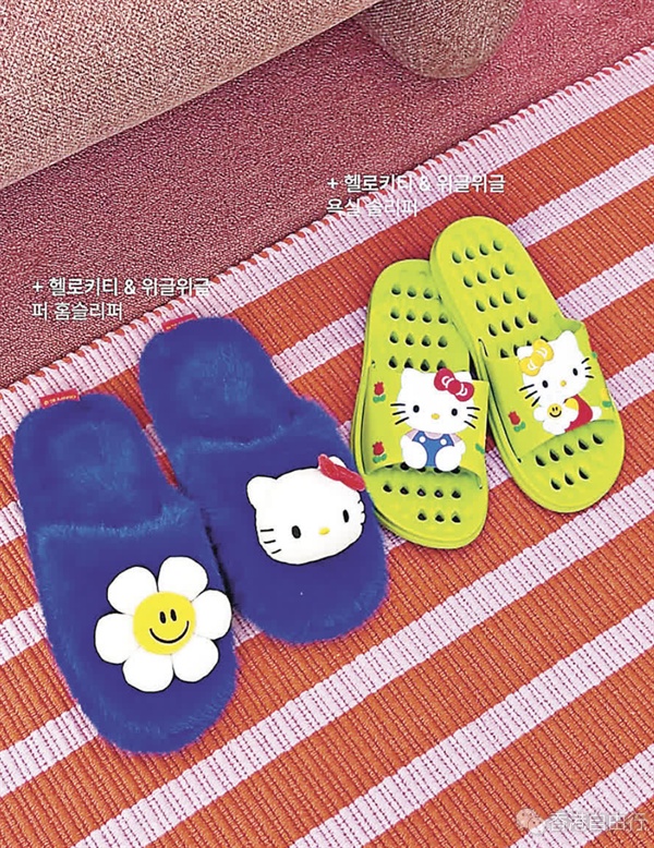 韩国文创品牌 Wiggle Wiggle以鲜艳「多巴胺色彩」、独特笑脸花与复古趣味的设计出名。涵盖家居、旅行、服饰等日常生活用品,深获韩星与年轻女性喜爱。今次品牌与Sanrio人气王 Hello Kitty联乘,结合鲜艳配色与甜美风格,设计出一系列家居小物,包括家居服、生活用品与科技配件,为你的生活注入活力。 最吸睛的单品有睡袍,粉色搭配浅蓝和红色的条纹图案,看起来疗癒又可爱,蓝色袖口点缀可爱的Wiggle Wiggle小花图案,背面有巨型Hello Kitty刺绣。还有绒毛拖鞋同样可爱,深蓝色的绒毛上绣有立体的Hello Kitty大脸和微笑小花,穿上后心情瞬间被萌化。如果想更实用的,还可以入手浴室防滑拖鞋,亮眼萤光绿饰有立体Hello Kitty与花卉图案,洞洞设计排水快能有效防止滑倒,在浴室着住相当实用。