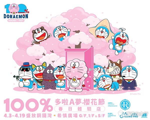 《100%多啦A梦&FRIENDS》再次回来香港!《100%多啦A梦&FRIENDS》巡迴特展为庆祝这场由香港主办的多啦A梦盛事在国际舞台大获成功,活动特别安排于巡迴特展的起点——香港,举办全新活动「100%多啦A梦樱花节」。