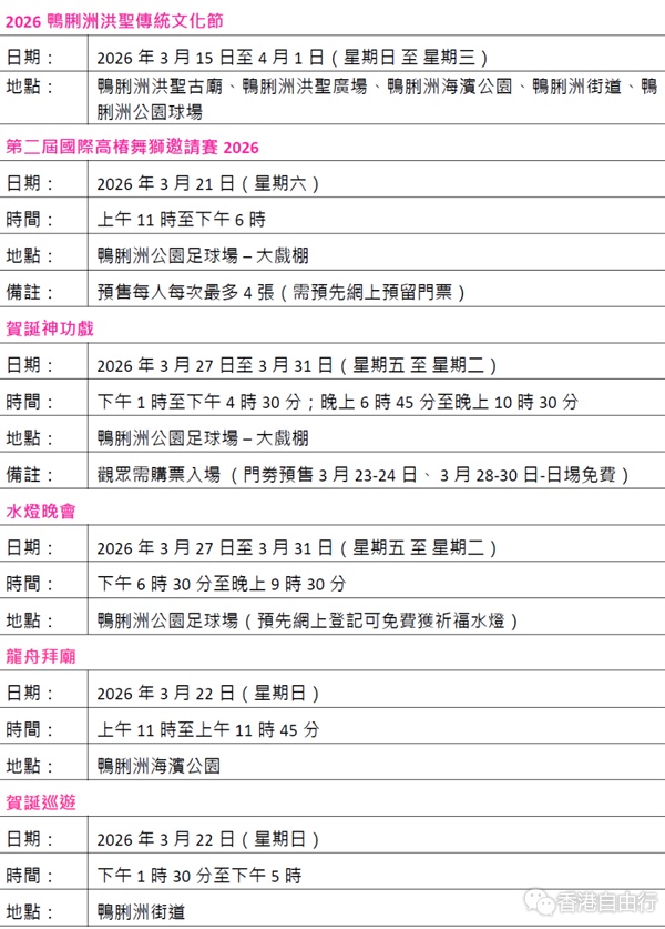 复活节长假即将来临,点新闻为各位读者整理放风游玩好去处,在各式线下活动中体会春光明媚的假期!浅水湾影湾园策划复活节庆典「艺绽复活节」,带来春日市集、复活蛋盲盒及工作坊,亦有午晚饭及下午茶等美食;复活节亲子必到的黄金海岸寻蛋乐,在逾5万平方呎彩蛋乐园中畅玩9大玩乐区,更有大热嘉年华游戏赢奖品;鸭脷洲年度盛事洪圣传统文化节3月15日至4月1日隆重展开,届时将举办国际高桩舞狮邀请赛,更有名伶献唱演出贺诞神功戏酬谢神恩,以及龙舟拜庙、贺诞巡游、祈福放水灯的活动,向洪圣爷祈求一年顺遂平安。多项户外活动带你感受节日盛宴,一齐来睇睇!