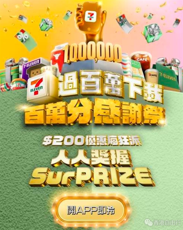 今年3月,7-Eleven下载量已突破一百万。为感谢顾客支持,7-Eleven今期推出7-Eleven App「百万分感谢祭」,由即日起至3月31日送上总值$200的优惠,包括「7仔预购」$100优惠券及到店自取$100人气产品免费换购券/优惠券。