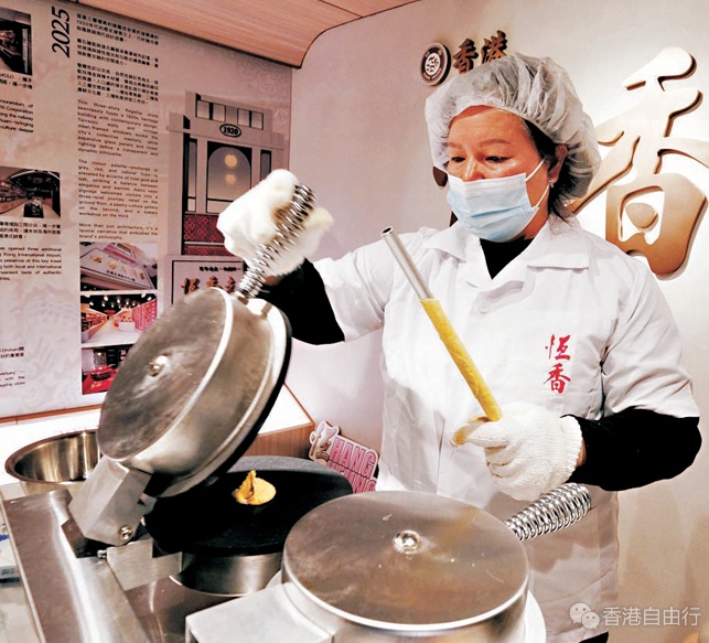 百年老店在市场变迁中历久不衰,靠的就是变,其中老字号恒香饼家凭藉105年的品牌积淀,製作中式唐饼但一点也不「老饼」,近月乘着工业旅游的风潮,于元朗旗舰店设立烘焙工作坊与唐饼文化馆的全新据点,将「食、买、玩」结合并推广中式甜点文化,透过线上曝光及线下体验,不仅让港人重温旧时饼店的烟火气,更透过亲手製作,感受中式饼食背后的手艺与故事。有参与工作坊学员表示,看似平凡简单的蛋卷製作难度超出预期,「要掌握好火候和时间,还要趁热卷紧,否则容易鬆散或烧焦,比西式烘焙更考验手艺。」希望藉此延续旧社会苦中难得一点甜的文化记忆。