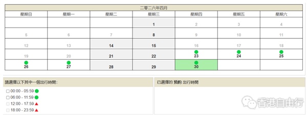 劳动节假期将至,今年五一(5月1日)与周六、周日相连,打工仔们可获得一连三日小长假,相信不少人会安排一次短途出行。政府一站通网站显示,截至今日(21日)下午2时许,五一当天港车北上4个时段预约均已爆满,4月30日中午12时至17时59分、18时至23时59分两个时段预约亦已满额。至于5月2日、5月3日,则全日4个时段均可预约。