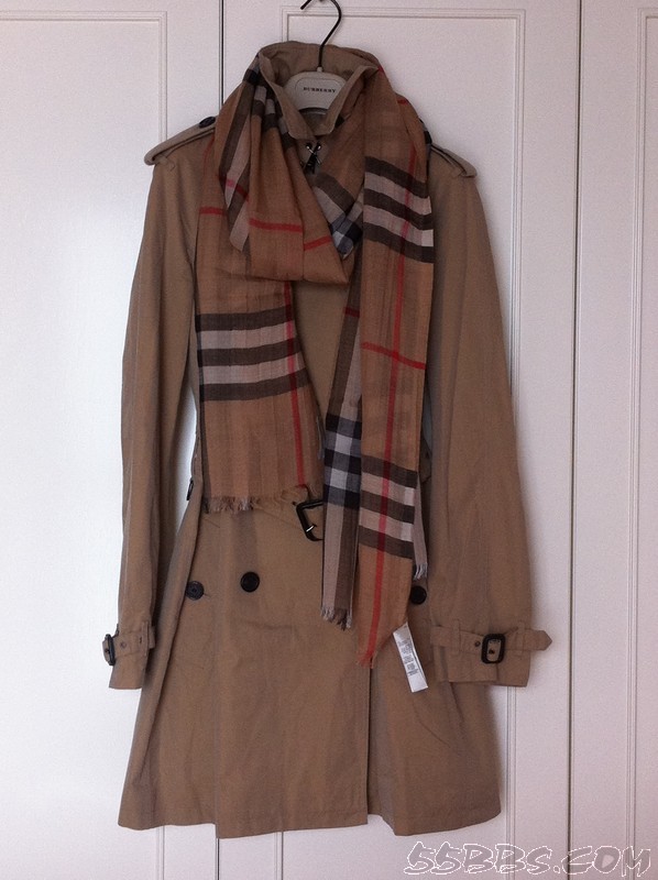 BURBERRY围巾,购于DFS,用临时打折卡买,75折。配在这件风衣上很搭,有提亮的效果。