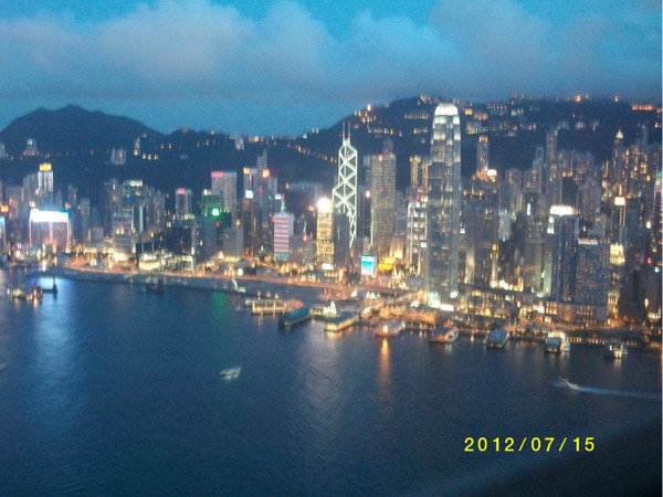 天际100大厦!!可以在100层高处俯视整个香港。我们选择了傍晚去,目的是可以看整个香港的夜景~上楼要150元港币,但是提前在网上预订的话,只要125元港币,我们又一次吃亏了!~~55555~