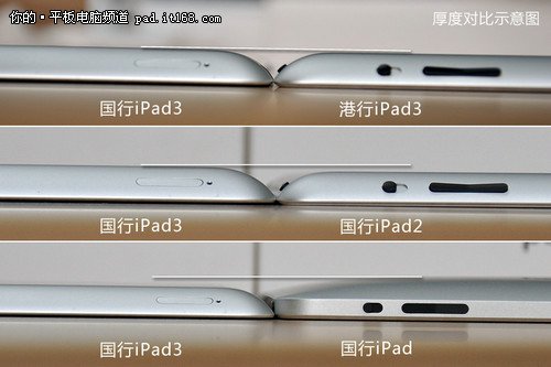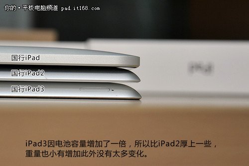 ▲国行iPad3与iPad一代、二代厚度对比