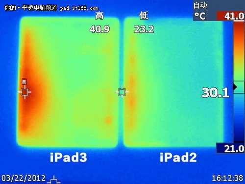 ▲从红外图看,iPad3发热明显