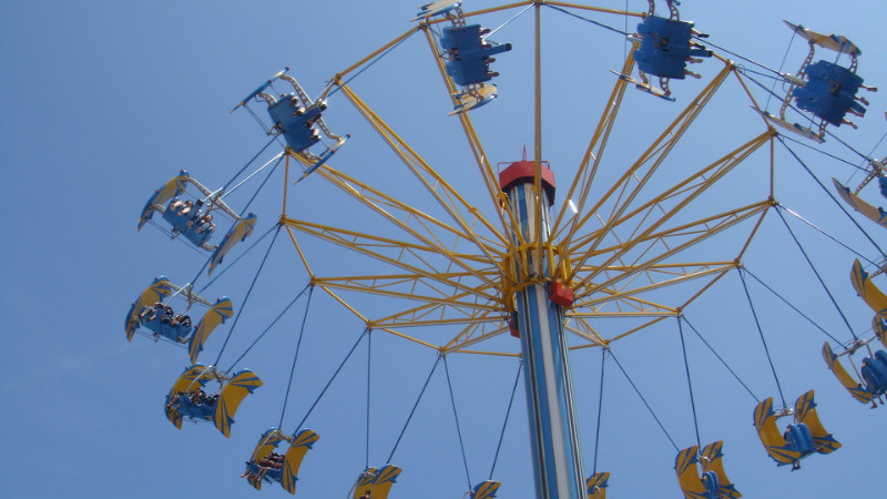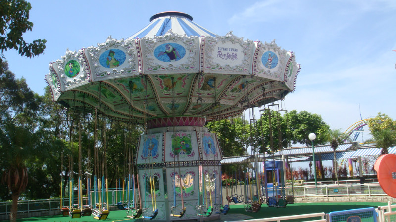 第四站【飞天荡秋千】,就在摩天轮的旁边。当时里面只坐这一个男的。工作人员好像在等。我进去后,我们两个人就开了,因为连接椅子的是钢链,软软的,完全荡秋千的感觉,都不好意思喊出来!