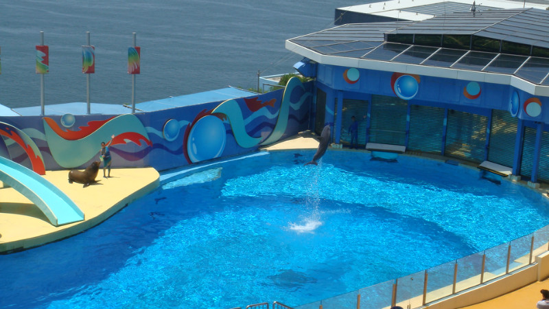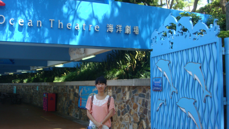第六站【海洋剧场——海洋伴我心】第一场表演是在11:30。我早半小时去占了个位置,玩的累了,看到对面的跳楼机,过山车,我却在吃水果,轻松!