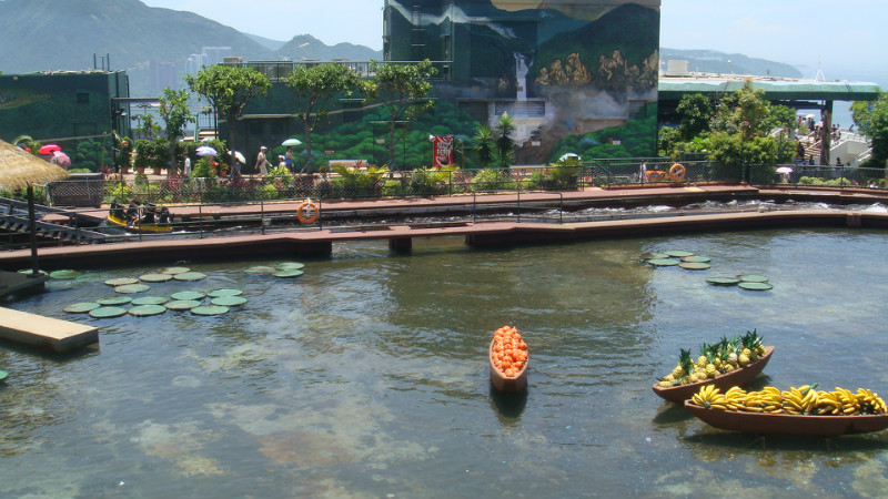 在广场上有场次表演,不过讲的是粤语,没啥好看的。中午已经很热了。这时候准备去看【南极馆】、【北极馆】