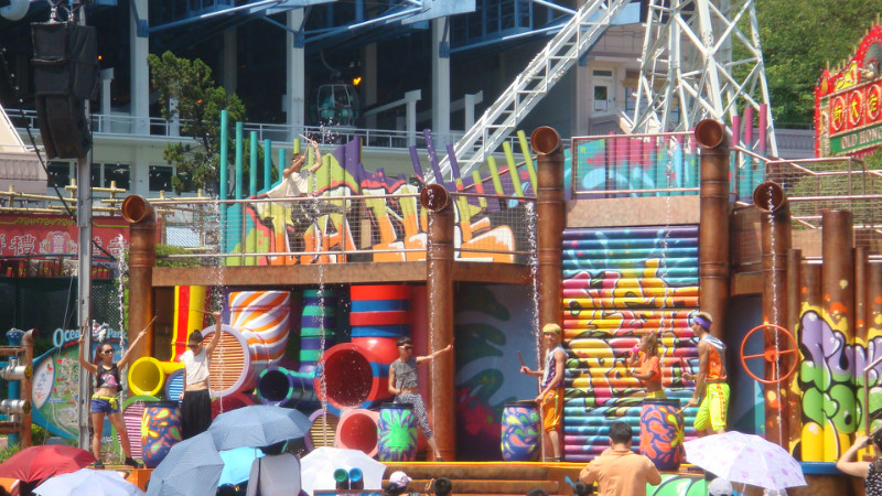 第七站【热带雨林】其中有个漂流,因为没带衣服没玩,会全身湿。路上有装置可以向漂流的人发射水柱。虽然自己没玩,却把其他人射湿,恶作剧真爽!