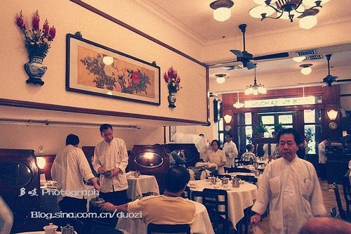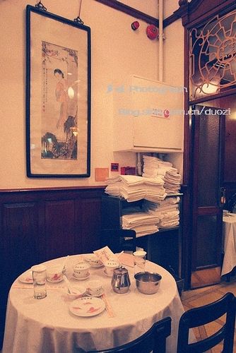 走进位于中环士丹利街的陆羽茶室,推开那扇古色古香的木玻璃门,时光仿佛倒转到半个世纪前的香港,啡色木质的正墙,红底黑字的对联,嵌着玻璃的镜子,酸枝花梨的家具,摆着粉彩花瓶的长桌,还有顶上老式的吊扇……完全是上世纪三四十年代混杂了岭南文化元素和少许西式装饰艺术的设计风格。