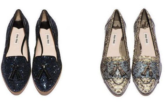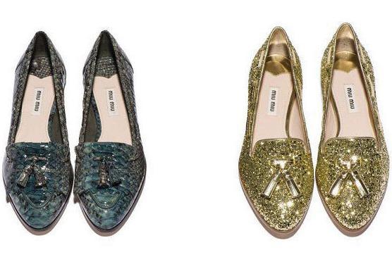 想找一双舒适好看平底鞋?不妨看看少女品牌Miu Miu的最新上架的平底鞋,这些带有流苏的平底鞋,辅以蟒蛇皮的面料和中性化的色调,狂野中带点小可爱,这样的船鞋亲们喜欢么?