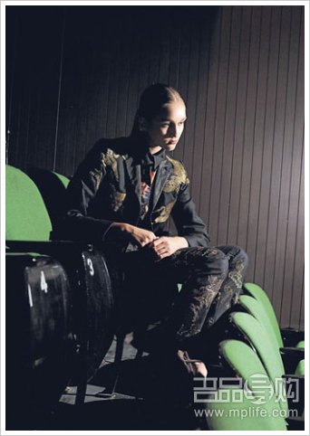Dries Van Noten 设计秋冬系列之前特地到伦敦的 Victoria and Albert Museum 一游,那里集齐了各个国家的装饰艺术和民族服装,他便将中国、日本、韩国等地方的传统服装拍下来,刚好就成为今季 print 的灵感来源。Dries Van Noten 一向擅长处理衣服的图案、剪裁、颜色、布料、层迭感,今年更再次做回他熟悉的民族风格加军装,整个系列就是手到拿来。中国皇帝的龙袍被裁剪成不同块状,拼贴到军装大衣上;日本的传统和服图案印在难以上色的丝质长裙上,再加件硬线条的军褛;或是在黑色大衣或手袖上用金线绣半边凤凰等,都是精妙地融合了中国日本的传统民族元素和出自品牌男装的硬朗军装风格。最令人佩服的是虽然用上大量东方色彩浓烈的图案,却没有一般中国设计带来的老套俗气感觉,确实养眼得多。