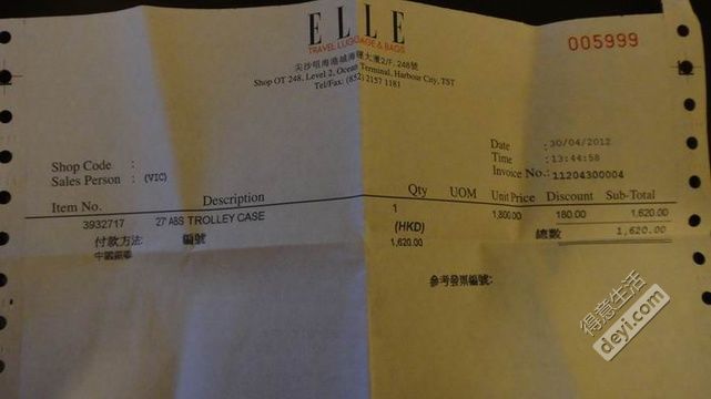 购于海港城ELLE专卖店,价格1620HKD