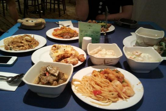 急切的心情就是快过,好像有些饿了,去吃个自助餐先……我们选择的是西式的哦,好多美食,这一刻才发现自己肚子太小。