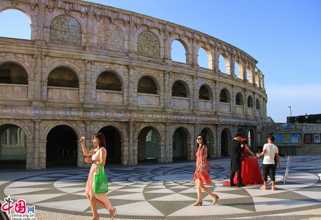 中西文化荟萃澳门渔人码头一角。集中西方不同建筑特色于一体的澳门渔人码头,是亚洲同类主题公园的首创,也是在澳门进行的北京奥运会火炬传递的起点与终点。 张爱东 摄