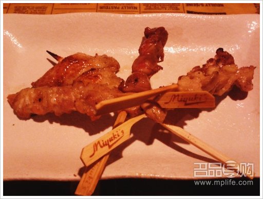 不到一阵子,就上第一道菜了串烧大集会,总共有五串分别是烧鸡肉串烧、烧鸡翼串烧、鸡软骨串烧、鸡肾串烧、鱿鱼串烧吃下去感觉很地道,不太吃得咸的朋友应该都会喜欢