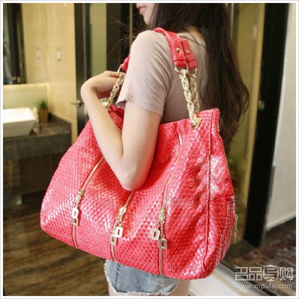 很时尚的一款女包哦,五金链条搭配PU皮提手很潮流哦,很闪亮的包包哦