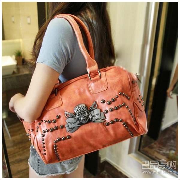 很个性的一款单肩女包哦,柳丁死亡骷髅头装饰很独特哦,MM们的必备款哦