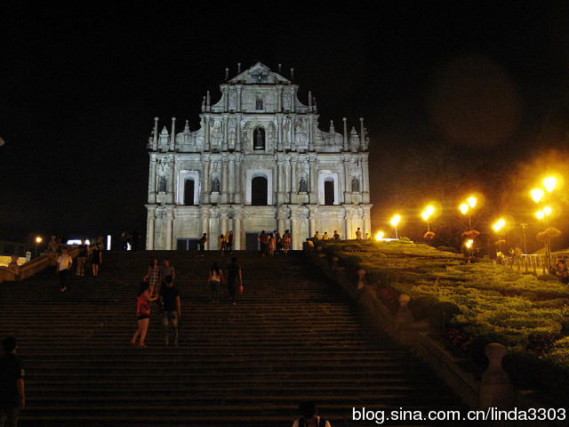 夜色中的大三巴牌坊,展示出另一番独特的魅力。
