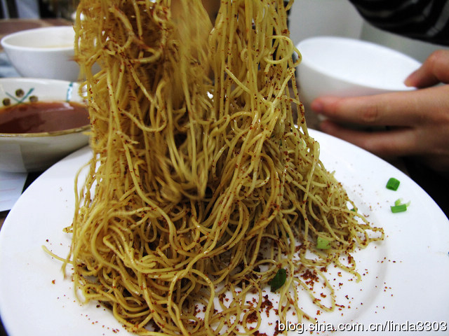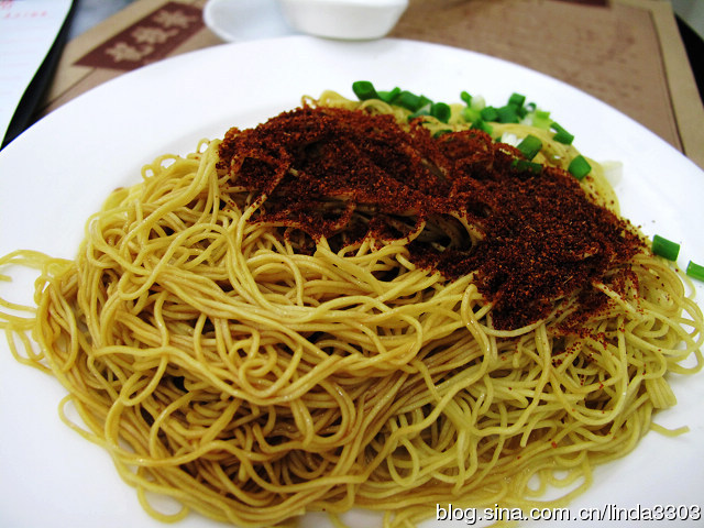 来这里必点的虾子捞面,面是手工打造的,虾子是经过炒后,香而酥。吃时要先将虾子与面拌均匀。