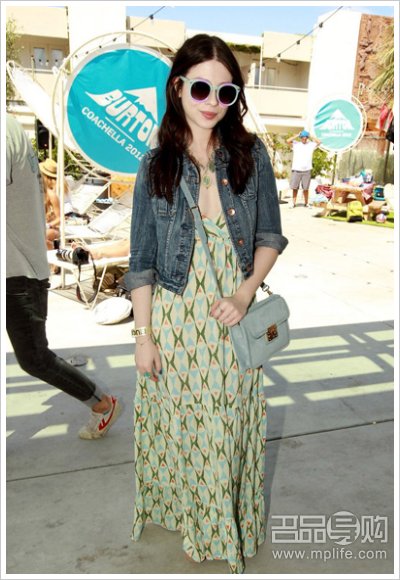 2012年柯契拉音乐节(Coachella Music Festival)的举办,吸引了好莱坞诸多明星结伴前去凑热闹,粉绿色挎包与搞怪墨镜呼应