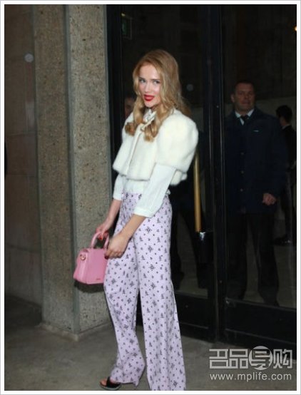 塞尔玛-布莱尔 Selma Blair 选择了粉色款,相比白皮草与阔腿裤的的搭配,后面一张显然不太上镜。对于粉色款要注意配以轻松可爱的花色和配饰。