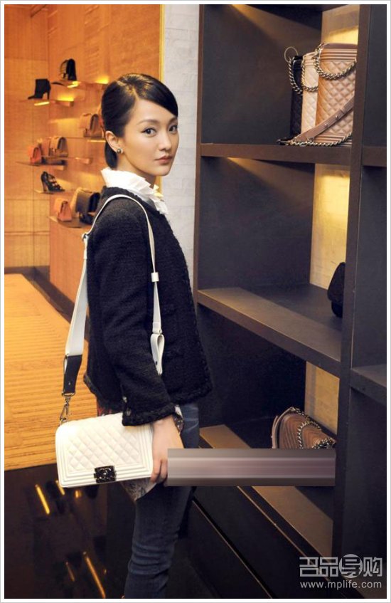 这款白色菱形纹翻盖包,整个衬出周迅淡雅的气质