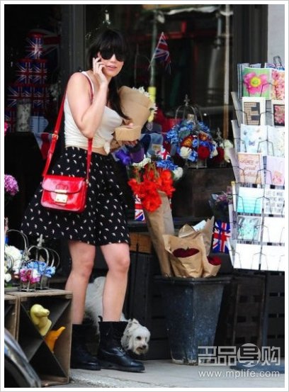 红色的包着实不太好驾驭,最简单的范儿就是摇滚范儿。松垮叛逆的装束体现在了上衣、短裙和不系带的皮靴上。