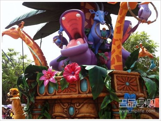 在迪斯尼乐园,每个项目都要排队半个小时左右,我们就看了米奇幻想曲,狮子王庆典,很好看,女儿看的开心的不得了,因为天气太热了,别的项目基本没玩,看完庆典,就去美心吃午餐了,本来在那边可惜看不到花车巡游了呢,谁知道吃饭的时候,女儿听到外面很热闹,一看是巡游啊,我们立马不吃了,冲出去了,好看的,演员在正午那么热的天气还表演的那么专业,敬业,看完花车巡游,才感觉不虚此行啊!