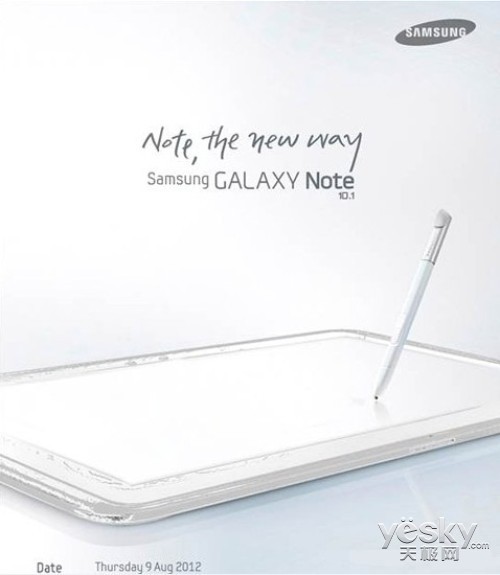 目前三星公司已经发出邀请函,称将在8月9日召开新闻发布会。我们可以看到,在邀请函封面上,非常显眼地印着即将到来的Galaxy Note 10.1。