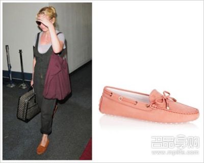 克里斯丁出入机场选择豆豆鞋,这身搭配很休闲很赞