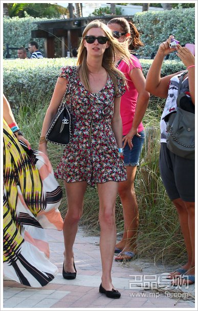 二小姐的穿着一向简约,此番穿着碎花的连身裤搭配上一双舒适的黑色平底鞋,大牌包包与墨镜还是凸显了超强的明星气场。