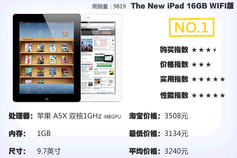 本周网购平板销量TOP10:新iPad再次降价