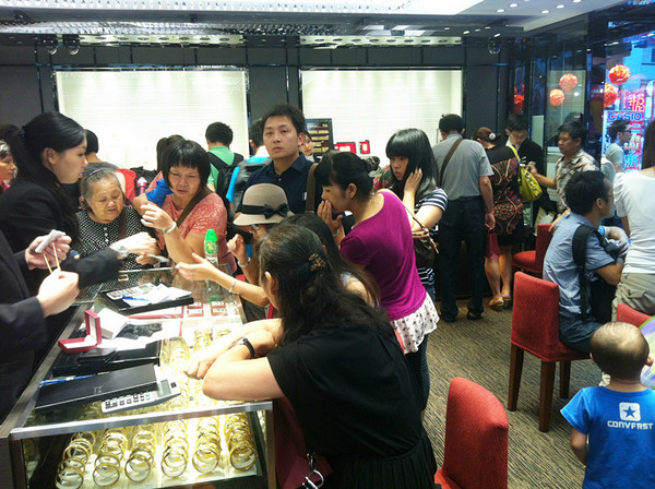 这个就是为什么要跑去香港买金的原因啦~~黄金417:360,白金495:332,华丽丽的差价有没有!! 白金差价更大,香港金价都是统一的!所以各个品牌的金价都一样!可是有按克算和一口价两种算法~差价还是挺大的~后面会讲