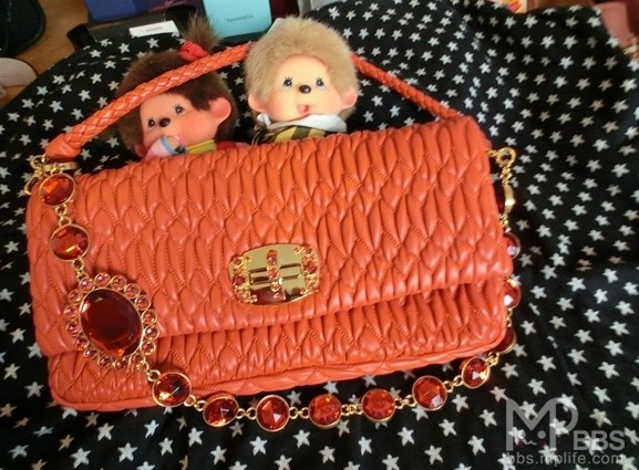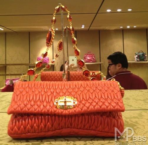 出了饭店,进了MIU MIU店铺,在DFS对面那个MIU MIU,入了这款小手包,新款哦,那个宝石的链子实在是。。。。我醉了。。。11000拿下。。